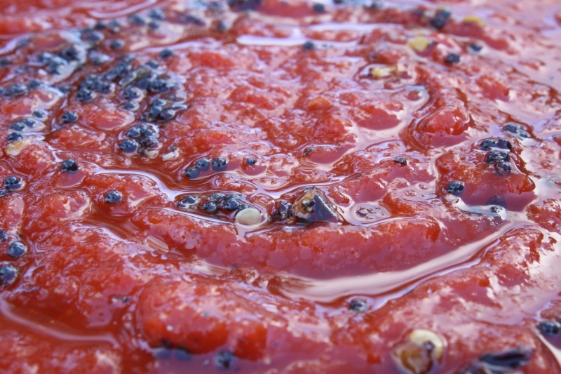 It is time for soup in our part of the world and this roasted capsicum soup with spiced oil is a wonderful change from the usual pumpkin or potato and leek soup that are favourites in our family. The capsicums are roasted and then gently simmered with some tomatoes, garlic and vegetable stock. Roasting capsicums makes them incredibly delicious. It’s a messy job peeling off the skins once they have been roasted, but it is not at all difficult and the result is so good it makes sticky fingers completely worthwhile. My sister taught me the method of tempering a little olive oil with chilli and mustard seeds as a way for everyone to add their preferred amount of heat to a dish. In this soup it adds fantastic pops of spiciness along with the slight sweetness of the capsicums in every mouthful. It looks so vibrant and fresh and tastes wonderful. Serve it with thick, crusty bread for a simple Sunday night supper or Saturday lunch.
