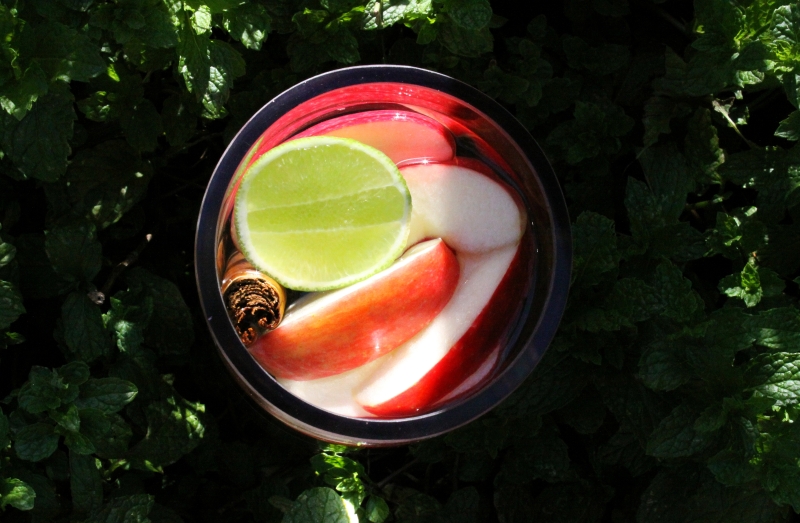 Oh, to be in Queensland in the springtime. Warm days; long, sunny afternoons fading to soft twilight; jacarandas smudging the landscape with purple; and the garden full of new growth. I wanted to make some fruit waters as a refreshing alternative to soft drink and this combination is one that I love. The apple, cinnamon and lime add subtle flavour and fragrance to the water and the jug can be topped up whenever needed with more water and ice. You could also try lemon, mint and finely sliced fresh ginger; or blueberries, strawberries and a vanilla bean. Perfect for a lazy Sunday afternoon!