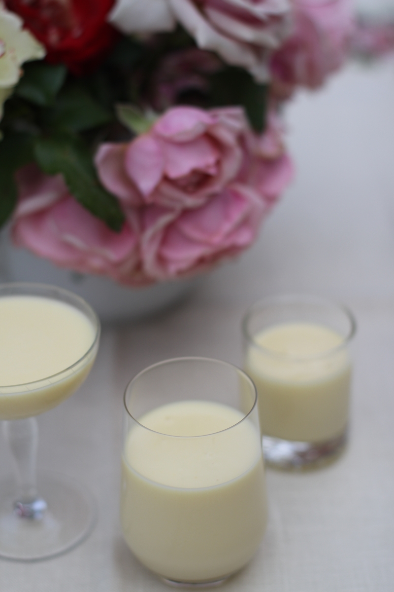 In love. There are no better words to describe my feelings about this panna cotta. Creamy, silky smooth, delicate, and flavoured with intensely fragrant passionfruit syrup, it fulfils all I could ever desire in a dessert. It’s also simplicity itself to make, and perfect for summertime. The passionfruit syrup can be made a day ahead and then the panna cotta whipped up in the morning. Because it is quite rich I like to serve it in a variety of beautiful little glasses, so that everyone can choose the size that suits them. On our recent holiday at the vineyard we watched the sun set over the vines ate a delicious lamb tagine, and then sat outdoors in the cool of the evening lingering over our panna cottas, talking of love and life and the joy of friendship. Bliss..